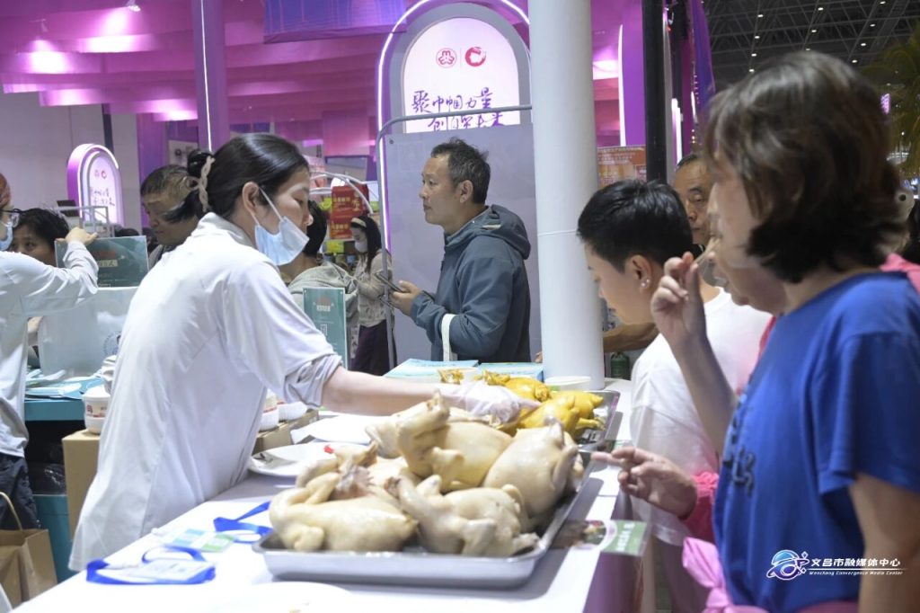 12月6日,在文昌市劳务品牌展馆内,人头攒动,热闹非凡。文昌鸡和糟粕醋的独特香气交织在一起,弥漫在空气中,吸引了不少客商和消费者纷纷驻足。展台上,色泽金黄、皮脆肉嫩的文昌鸡整齐摆放,旁边搭配着精心调制的特色蘸料,让人垂涎欲滴。一旁的糟粕醋火锅热气腾腾,散发出诱人的味道。工作人员热情地向大家介绍着文昌鸡的养殖过程和糟粕醋的制作工艺,让大家深入了解文昌特色农产品背后的文化底蕴与产业价值,为文昌农业产业的进一步发展奠定良好的认知基础。